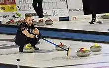 Niklas Edin participated in as many as ten different sports simultaneously before he took up curling.[10] He started curling in 1999, inspired in part by the Swedish women's team skipped by Elisabet Gustafson when they secured the bronze medal at the 1998 Winter Olympics.[10] Five years later in 2004, Edin skipped his own team to a World Junior Curling Championship title for Sweden, defeating the team skipped by Stefan Rindlisbacher for Switzerland. The following year, Edin was selected as the alternate for the silver medal-winning Swedish team skipped by Nils Carlsén at the World Junior Curling Championships. Edin also skipped a new team in 2005 to a silver medal at the European Mixed Curling Championships, together with future longtime teammate Sebastian Kraupp. In 2006, Edin won a second silver medal at the World Junior Curling Championships, this time playing third for Team Carlsén. The team also qualified for the 2006 World Men's Curling Championship, finishing in fifth place.