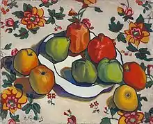 Nikolai Efimovich Kuznetsov (1879–1970) was a Russian-Soviet painter and theatre designer. His teachers included Valentin Serov and Konstantin Korovin. From 1916 to 1918 he exhibited with the Jack of Diamonds group; from 1915 to 1922 he was a member of the Free Art Society. He began designing for the theatre in 1917. His work continued to be exhibited after the Revolution.