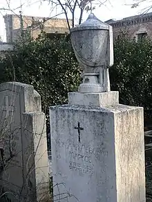 Prior to his decisive settling in Iran, Markov was a high-ranking member of the Imperial Russian army, and fought in the Caucasus against the Bolsheviks under Colonel Nikolai Baratov, the commander of the Russian forces in Iran and to whose staff he was attached, and had served with the fanatically anti-Bolshevik Major-General Lazar Bicherakov, another one of Baratov's senior officers.[1] A staunch supporter of the White movement, in the years around and after the Bolshevik Revolution, he had served as a captain in the Persian Cossack Brigade under General Vsevolod Starosselsky as well.[1] Nikolai Markov later worked for the Municipality of Tehran where he built many buildings.[2][3][4][5] Alborz High School, the Post Office and Telecommunications of Tehran, factories and even a mosque.[6] He was buried at the Doulab Cemetery.