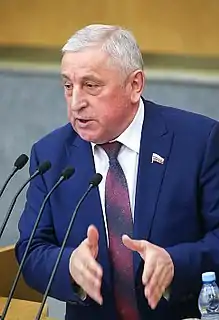 Nikolay Mikhailovich Kharitonov (Russian: Николай Михайлович Харитонов; born 30 October 1948) is a Russian politician from the Novosibirsk region. He is a leading member of the Agrarian Party of Russia, and a member of the State Duma, the Russian parliament.[1][2] In 2004 he ran for the office of president of Russia in the presidential elections. His candidacy was supported by the Communist Party of the Russian Federation (CPRF). He came second,[3] with 13.7% of the votes cast.