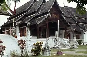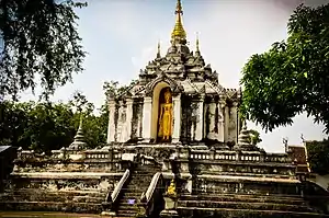 Nirat Hariphunchai (Thai: โคลงนิราศหริภุญชัย, Khlong nirat hariphunchai) is an old poem of around 720 lines, originally composed in Northern Thai language. Nirat, derived from a Sanskrit word meaning “without”, is a genre of Thai poetry that involves travel and love-longing for a separated beloved.[1] Hariphunchai (Pali: Haribhuñjaya) was an ancient kingdom, centered at Lamphun, incorporated into the Lan Na kingdom by Mangrai in the late 13th century. The poem recounts a journey from Chiang Mai to Lamphun to venerate the Buddhist reliquary, Wat Phra That Hariphunchai, with visits to around twenty temples and shrines along the way. During the journey, the author laments his separation from his beloved Si Thip. The journey takes two or three days. The poem ends at a festival in the reliquary, attended by a queen and her son. The original may date to 1517/18 CE. The poem was little appreciated until recently owing to the difficulty of the old language.