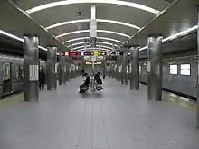 - There is an island platform with two tracks on the third basement. On the second basement, north ticket gate is used for exit, center ticket gate for entrance, and south ticket gate for both entrance and exit.