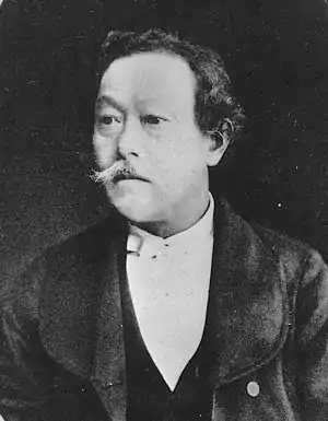 The two Japanese students were put in the care of Professor Simon Vissering, who taught Political Economy, Statistics and Diplomatic History at the University of Leyden. They developed a genuine friendship with Vissering who was conscious of the long-standing friendship between Japan and the Netherlands. He felt that the students' desire for knowledge would make them likely future participants in Japan's modernization. Vissering, a member of La Vertu Lodge No, 7, Leyden introduced them to Freemasonry, of which they became the first Japanese adherents on October 20, 1864.[3]