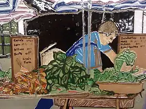 In 1969, together with a group of artists, educators and activists, Tufiño founded El Museo del Barrio.[2] The museum's façade was the site of her first public mural.[1] Tufiño's ceramic murals have been commissioned for a number of public locations including the 103rd Street and Lexington Avenue subway station,[3] the Third Street Music School, and LaGuardia Community College. Tufino's ceramic mural for P.S. 12 depicts scenes from Brooklyn's West Indian Day Parade, held annually on Labor Day.[4]