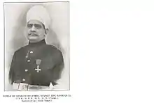 Nawab Sir Nizamat Jung Bahadur (April 1871 in Hyderabad State[1] – 1955[2]) was an Arab-Indian poet. Nizamuddin was the second son of the Late Nawab Rafath Yar Jung Bahadur (Moulvi Shaikh Ahmed Hussain), Subedar of Warangal, well known in his days as an ardent educational and social reformer and statesman of no mean order.