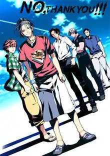 No, Thank You!!! is a pornographic yaoi-themed visual novel video game developed by Parade for Microsoft Windows. It was released in Japan in 2013, and worldwide in English by MangaGamer in 2015.