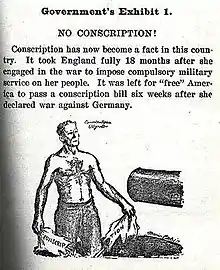 The No Conscription League was an anarchist organisation designed to promote anti-draft manifestos and aid those who refused military service.[1] The league lasted for 6 weeks and was used to charge its founders Emma Goldman and Alexander Berkman with conspiracy to obstruct the draft.[1][2]