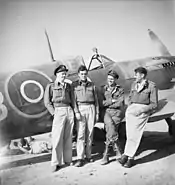 No. 451 Squadron was transferred to Mersa Matruh in Egypt on 8 January 1943 and redesignated a fighter squadron. The squadron was responsible for air defence of part of the Nile Delta and nearby convoys and in February it received a detachment of Supermarine Spitfire fighters for high-altitude interceptions. Aircraft from the squadron saw combat on only one occasion during the first six months of 1943 and morale remained low; the RAAF Historical Section has written that this period marked "the nadir of the squadron".[11] In January No. 451 Squadron's commander Wing Commander D.R. Chapman proposed to RAAF Overseas Headquarters that the unit be transferred to Australia but this was rejected. Chapman was replaced early in May after he wrote a letter to the headquarters of No. 219 Group RAF in March which complained about the squadron's lack of employment and appeared to condone the poor morale within the unit.[12] No. 451 Squadron's only offensive action during the year was a raid against Crete on 23 July in which it contributed six Hurricanes to a force of Beaufighter heavy fighters and Baltimore bombers. Three of these Hurricanes were lost during the operation.[13]