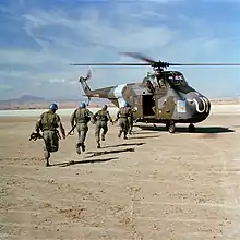 The squadron was reformed on 17 January 1972 from 1563 Flight and a detachment from 230 Squadron[14] with Westland Whirlwind HAR.10s assigned to British Forces Cyprus at RAF Akrotiri, with a detachment at Nicosia International Airport. Duties included support of United Nations Peacekeeping Force in Cyprus (UNFICYP) operations and search and rescue duties for the whole of southern Cyprus.[55][56] To meet this dual role, the squadron was divided into two flights, with "A" flight, based at Akrotiri for search and rescue duties, with its helicopters painted in overall yellow, and "B" flight for UN support at Nicosia with camouflaged helicopters marked with pale blue bands matching the blue berets of UN peacekeepers.[57][58] The squadron later (December 1981) replaced the Whirlwind with the Westland Wessex HC.2[59] and later still (June 1984) with the Westland Wessex HU.5C. It was the last squadron to use the Westland Wessex.[2] The two flights were combined when the squadron shrunk in size to five helicopters after re-equipment with the Wessex, but its helicopters retain aircraft the light blue band around their tail.[57][58]