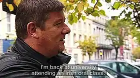 In Cork Manchán first visits the English Market and, out on the streets, he meets RTÉ's John Creedon, an Irish speaker. He also attempts to get his hair cut but needs help from a fellow customer when the female barber, who was educated in Tennessee in the United States and has never spoken Irish, does not understand him.