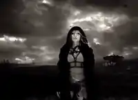 The accompanying music video for "No Man's Land" was directed by long-time collaborator Ryuji Seki.[15] The music video was shot with Koda in front of a green screen to immolate the chroma key functions.[13] Koda, who was present at post-production for the music video, suggested the use of black and white colouring, which Seki then added.[13] This is Koda's first music video to be in full black and white.[13] The video opens with a distance shot of a wasteland, with decaying trees, floating black leaves, and hills.[15] Koda is seen dragging herself through the valley, and an inter cut scene features a body shot of Koda in front of an abandoned city and abandoned merry-go-round; the merry-go-round references the lyric in the song.[2][15] As the first hook stars in the song, it features two scenes; Koda singing the track in a distance, and close-ups of Koda wearing a shackle. The verse has Koda wandering through a valley and singing the song.