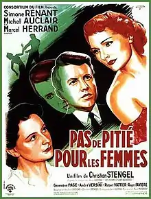 No Pity for Women (French: Pas de pitié pour les femmes) is a 1950 French mystery film directed by Christian Stengel and starring Simone Renant, Michel Auclair and Marcel Herrand.[1] It was adapted by Jean Giltène from his own novel. The film's art direction was by Robert Hubert.