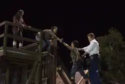 Glenn opens the gate so Maggie and Enid can climb down the fuel truck, and they with Sasha and Abraham cover Daryl who fills a pond with fuel and ignites it with the RPG launcher. The enormous pool of fire in the night immediately draws the attention of the walkers. This takes pressure off of those fighting just as they were about to be overwhelmed, allowing them to gain the upper hand and continue relentlessly. The next morning, the survivors regroup after having killed every last walker. Rick pleads with his unconscious son to pull through, hopeful for the future as the Alexandrians have proven they have what it takes to live, now believing that Deanna's plans could be achieved. Carl's fingers close around Rick's hand in seeming response.