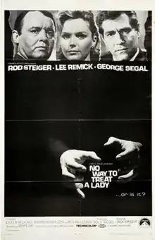No Way to Treat a Lady is a 1968 black comedy thriller directed by Jack Smight, with a screenplay by John Gay[2] adapted from William Goldman's novel of the same name. The film starred Rod Steiger, Lee Remick, George Segal and Eileen Heckart. Segal was nominated for a BAFTA for his role as Detective Moe Brummel.[3]