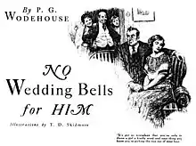"No Wedding Bells for Him" is a short story by British author P. G. Wodehouse, which first appeared in the United States in the October 1923 issue of Cosmopolitan,[1] and in the United Kingdom in the November 1923 Strand.[2] It features the irrepressible Stanley Featherstonehaugh Ukridge, and was included in the collection Ukridge, published in 1924.[3]