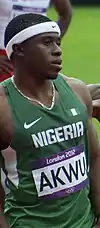 Noah Akwu (born 23 September 1990 in Enugu) is a Nigerian track and field sprinter.[1] At the 2012 Summer Olympics, he competed in the Men's 200 metres. He was the bronze medallist over that distance at the 2012 African Championships in Athletics. He was a relay silver medallist at the 2014 African Championships in Athletics and represented his country at the 2014 Commonwealth Games that year.[2]