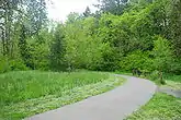 Terrestrial wildlife includes beavers, tree frogs, and raccoons among others.[11] Additionally, the park is home to some bats.[12] Aquatic life in the creek includes crawfish, freshwater mussels, and some smaller fish.[10] Snowberry, Pacific dogwood, Douglas fir, red cedar, nightshade, alder, western hemlock, ash, rose hips, red osier dogwood bushes, ninebark, bittersweet nightshade, jewelweed, and maples make up the various plant species at the park.[9][10][11] Some of the cedar trees are more than a century old.[6]