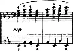 4 meter. In measure 41, the key changes to E♭ major and returns to G minor in measure 67. The piece is a total of 91 measures long, ending with a Picardy third, and is in ternary form.[2] One of Chopin's students once claimed that Chopin himself forgot to mark the increase in tempo for the chorale, which led to the section being played too slowly.[7]