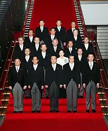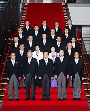 ![]() Prime Minister Yoshihiko Noda (front row, centre) with his new cabinet inside the Kantei, September 2, 2011. | |