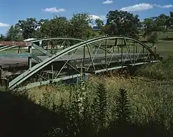 Nodaway River Bridge is located west of Grant, Iowa, United States. It spans an arm of a small pond in Pilot Grove County Park for 70 feet (21 m).[2] The Montgomery County Board of Supervisors accepted a petition from S. M. Smith to build a bridge over the Nodaway River south of Grant in June 1876, and another bridge over the Nishnabotna River at the same time. The county contracted with the Missouri Valley Bridge & Iron Co. of Leavenworth, Kansas, to design and build the Nodaway River bridge, which was completed later the same year for $1,000.[2] The bridge consists of a single-span Bowstring arch-truss with a wood deck. It remained in use as a road bridge until 1968, when it was moved to the park for use as a pedestrian bridge. Even though it is no longer in its historic location and used for its historic function, the bridge was listed on the National Register of Historic Places in 1998 as an example of early transportation development in Iowa.[1][2]