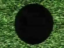 The pulsation between an inner and outer field, the circle and rectangular is mirrored by the rapid alternations between the two video sources, which maintains a rate of about sixty cycles per second.[8] The switching occurs between two video sources, producing the two fields, background and circle. The two fields alternate between pure color and pure noise.[9] The alternation creates a complex pulsation between circle and ground.