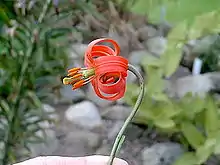 This work by Kayano seems to be the only one so far to demonstrate the accumulation of a B chromosome as a result of non-random segregation during meiosis in the embryo sac mother cell.[16][17] In contrast, an accumulation of B chromosomes in plants by a directional nondisjunction in mitoses before or after meiosis has been observed in many cases, as for the first time in 1960 by Sune Fröst in the Crepis pannonica.[18] Both chromatids often end up in the same daughter cell (nondisjunction), and this is directed in such a way that an accumulation in the inheritance results. Non-random segregation in meiosis can therefore only be concluded if directional nondisjunction in mitoses can be excluded. This is largely assured in the case of the Mediterranean sawfly plantain Plantago serraria.[19] and Hypochaeris maculata.[20] Another case is probably in Phleum nodosum.[21]
