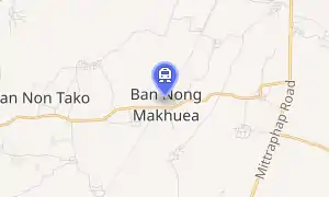 Nong Makhuea railway station is a railway station located in Non Kha Subdistrict, Phon District, Khon Kaen Province. It is a class 3 railway station located 370.04 km (229.9 mi) from Bangkok railway station.[1][2] The station was rebuilt in 2019 as part of the double tracking project between Thanon Chira Junction and Khon Kaen.[3]