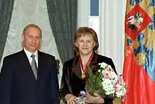 In November 2000, Russian President Vladimir Putin has signed a presidential decree awarding the Order of Merit for the Fatherland, third degree, to Mordyukova.[4]