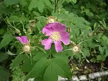 Rosa nutkana, the Nootka rose,[3] bristly rose, or wild rose is a 0.6–3.0-metre-tall (2–10-foot) perennial shrub in the rose family (Rosaceae).[4][5][6]