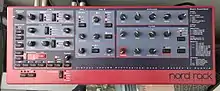 Released in 1994, the original Nord Lead was the digital synthesizer that made the term virtual analog synthesis popular.[1] The now widely accepted term "virtual analog", was first coined by Clavia with the release of the Nord Lead.[2] This synthesizer was distinctive for its red coloration, knob-laden surface and unique pitch-stick and modulation wheel. After the Nord Lead, several updates followed suit; such as the Nord Lead 2, Nord Lead 3, and Nord Lead 2X.