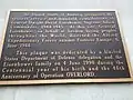 Plaque says: The United States of America recognizes the selfless service and manifold contributions of General Dwight David Eisenhower, Supreme Allied Commander, 1944–1945. At this site, General Eisenhower, on behalf of Freedom loving peoples throughout the World, directed the Allied Expeditionary Forces against Fortress Europe, 6 June 1944. This Plaque was dedicated by a United States Department of Defense delegation and the Eisenhower family on 4 June 1990 during the Centennial year of his birth and the 46th Anniversary of Operation Overlord.