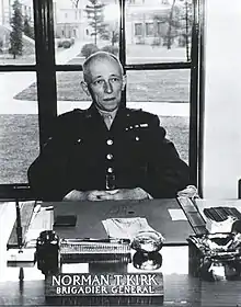In 1943, General George Marshal appointed him Surgeon General of the United States Army to replace James C. Magee.[4] After appointment, he was promoted to Major General. Kirk worked to create uniform protocols for treating patients with amputations to improve care for soldiers.[3] The improvements in wound treatment reduced the mortality rate of injured soldiers to half of the level seen during World War 1.[1] He received the distinguished service medal in May 1945.[2]