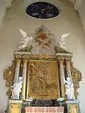 1937 saw an internal rebuilding effort by architect Viktor Segerstedt (1878-1963). Existing tiled floor with the base floor was removed. The current floor of hard-baked bricks were put down. The round chancel window was fitted with a stained-glass window made of glass by artist John Österlund (1875-1953). The restoration was carried out in 1960 under the direction of the palace architect Ragnar Jonsson (1918-2001). The church's western section was rebuilt and the current benches were installed. A mural above the altarpiece was created by conservators Gösta Lindström (1905-1989). [3] [4] [5] [6]