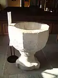 The baptismal font of stone is from the Middle Ages and possibly as old as the original church. The altar in Rococo ornamental style was made in 1752 by Magnus Granlund. The altar is gilded. The pulpit was carved in 1647 by master Lars predikstolsmakare. In 1758 its original colours were gilded to match the altarpiece. The present organ, with fifteen voices, was added in 1960 and replaced an organ from the 1600s. [7]