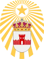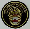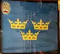 At the 300th anniversary of the Fortifikationen ("Royal Engineers") on 26 September 1935, His Majesty the King Gustav V presented a colour to the then Boden Engineer Corps.[2] On 1 January 1998, the colour of Svea Engineer Corps was transferred to Norrland Engineer Corps after Svea Engineer Corps was disbanded on 31 December 1997.[3] A new colour was presented to the then Norrland Engineer Battalion in Boden by His Majesty the King Carl XVI Gustaf on 27 August 2001. It was drawn by Kristina Holmgård-Åkerberg and embroidered by machine and hand (the badge) in insertion technique by the company Libraria. The colour may be used according to the decisions of CO I 19. Blazon: "On blue cloth in the centre the lesser coat of arms of Sweden, three yellow crowns placed two and one. In the first corner a mullet with a cluster of rays, all in yellow. In the lower part of this the coat of arms of the unit; argent, throughout a wall with a gatetower both embattled gules (the original name of the battalion was Royal Boden Engineers Regiment, Ing 3); on a chief azure three open crowns in fess or (a legacy from the former Svea Engineer Regiment, Ing 1). The shield ensigned with a royal crown proper.[4] After the battalion was disbanded, the colour was carried by Norrland Engineer Company at Norrbotten Regiment until the company was disbanded on 21 June 2011.[3]