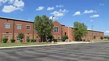 The four regular public high schools in Adams County were built at the same time and all four featured a large granite tablet outside the school carved with the Ten Commandments. They were relocated after a lengthy four-year legal battle over the placement of the tablets on public property. [4]