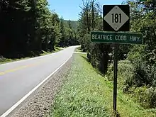 - Beatrice Cobb Highway - official name of all NC 181 in both Burke and Avery counties. It is named after Beatrice Cobb (1888–1959) who started her career early as a teacher and writer. In 1916, she became editor and publisher of the Morganton Herald; in 1922 she was chosen secretary of the North Carolina Press Association by her peers. Eventually her journalism clout in the state became also political clout; she was a Democratic National Committeewoman and an adviser on allocations to federal agencies in the state during the New Deal era. She received numerous awards during her career and an honorary doctorate from the University of North Carolina.[5][6]