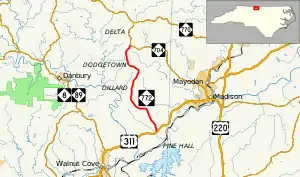 North Carolina Highway 772 (NC 772) is a primary state highway in the U.S. state of North Carolina. NC 772 is a two-lane rural highway that traverses 10.3 miles (16.6 km) from U.S. Route 311 (US 311) north of Pine Hall to NC 704 in Prestonville.