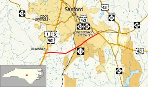 North Carolina Highway 78 (NC 78) is a primary state highway in the U.S. state of North Carolina. The highway connects the Tramway community with Sanford's Jonesboro Heights neighborhood.