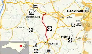 North Carolina Highway 91 (NC 91) is a primary state highway in the U.S. state of North Carolina running from US 13/US 258/NC 903 in Snow Hill to US 264 near Walstonburg, entirely in Greene County.