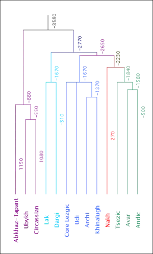 ![]() North Caucasian family tree (Nikolayev & Starostin 1994) |