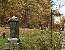 North Cemetery is located about 1 mile (1.6 km) north of the Leverett Center, the town's main village center, on the west side of Montague Street. The 1-acre (0.40 ha) cemetery is roughly rectangular, with a low fieldstone wall ringing it. There are two pedestrian entrances in the wall facing the street, and there is no formal circulation pattern. Prominent markers in the cemetery include a large boulder that serves as a marker for the Fishel family site, and a series of 19th-century marble obelisks in its northern section.[2]