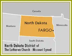 The North Dakota District is one of the 35 districts of the Lutheran Church–Missouri Synod (LCMS), and consists of congregations throughout the state of North Dakota as well as including one congregation in South Dakota. The North Dakota District includes approximately 88 congregations, subdivided into 6 circuits, as well as 1 preschool and 4 elementary schools. Baptized membership in district congregations is approximately 22,000.[1]