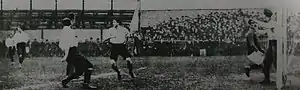 Their first game at North Greenwich was against Portsmouth on 21 September 1901, which they lost 3–2. The Game was watched by 6,000 people.[7] The last ever first-team game played on the Isle of Dogs was on 10 October 1910 against Woolwich Arsenal in the London Challenge Cup. Millwall won the game 1–0 in front of a crowd of 3000.[8][9]
