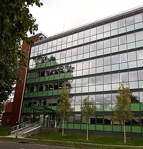 When the council was created in 1974, it inherited five sets of offices from the five former authorities, spread across the four towns of Hitchin, Letchworth, Baldock and Royston. Initially the new council used the former Hitchin Rural District Council's offices (later called Centenary House) on Grammar School Walk in Hitchin as its headquarters, with the other offices providing additional accommodation. In 1975, the year after the new council's creation, it consolidated most of its functions into a six-storey building on Gernon Road in Letchworth, which had been built as part of the Central Area (later Garden Square) Shopping Centre. The building was named Council Offices and has served as the council's headquarters since then.[2][3][4] The council rented the building until 2013, when it purchased it for £3.6 million.[5]