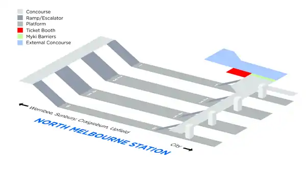 Media related to North Melbourne railway station at Wikimedia Commons- Melway map at street-directory.com.au