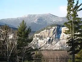 ![]() North Moat Mountain, looking southwest from Intervale. Cathedral Ledge cliff is in right middleground. | |