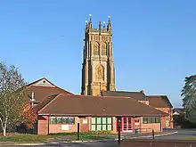 The town has the minster church of St Mary the Virgin, with a highly decorated tower which, at 112 feet (34 metres) high,[31] is claimed to be one of the tallest towers in the West Country. The building is mainly dated from the 15th century, with a minstrel gallery from 1623, a peal of six bells, and a clock built in Bridgwater in 1807. It has been designated by English Heritage as a grade I listed building.[32] A specification of the organ can be found on the National Pipe Organ Register.