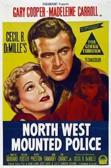 North West Mounted Police is a 1940 American Western film produced and directed by Cecil B. DeMille and starring Gary Cooper and Madeleine Carroll. Written by Alan Le May, Jesse Lasky Jr., and C. Gardner Sullivan, and based on the 1938 novel The Royal Canadian Mounted Police by R. C. Fetherstonhaugh, the film is about a Texas Ranger who joins forces with the North-West Mounted Police to put down a rebellion in the north-west prairies of Canada. The supporting cast features Paulette Goddard, Preston Foster, Robert Preston, Akim Tamiroff, Lon Chaney Jr. and George Bancroft. Regis Toomey, Richard Denning, Rod Cameron, and Robert Ryan make brief appearances in the film playing small roles.
