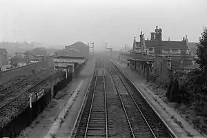 Originally named Northampton, this was the first station serving the town. It opened in 1845, with buildings designed by architect John William Livock.[4] The service was from Peterborough to Northampton via Wellingborough. It was renamed Northampton Bridge Street in 1876, after a new station was built for the line to Market Harborough.[5] The station meant that people could travel to Wellingborough, Irthlingborough and Peterborough more quickly than before.